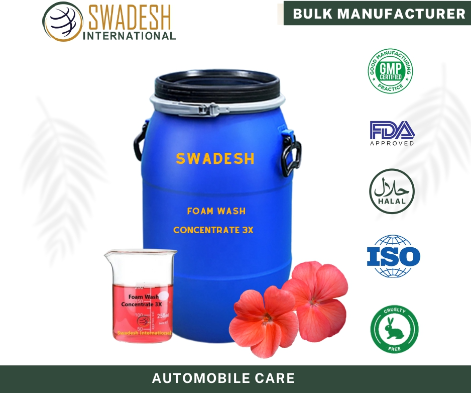FOAM WASH CONCENTRATE 5X, manufactured by SWADX AMERICAN LLC, is highly thick and concentrated solution. Dilution Ratio of FWC 5X is 5kg Foam Wash from 1Kg Concentrate after Adding Water.