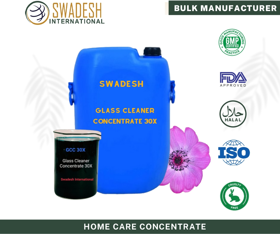 Glass Cleaner Concentrate 30X, manufactured by SWADX AMERICAN LLC, is highly Effective and concentrated glass cleaner solution. Dilution Ratio of GCC 30X is 30kg Glass Cleaner from 1Kg Concentrate after Adding Water.