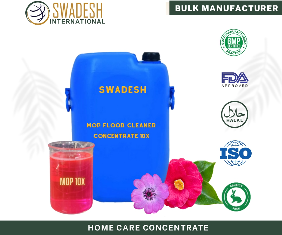 Mop Floor Cleaner (Perfumed) Concentrate 10X, manufactured by Swadesh International, is highly Effective and concentrated solution. Dilution Ratio of FCC 10X is 10kg Mop Floor Cleaner (Perfumed) from 1Kg Concentrate after Adding Water.