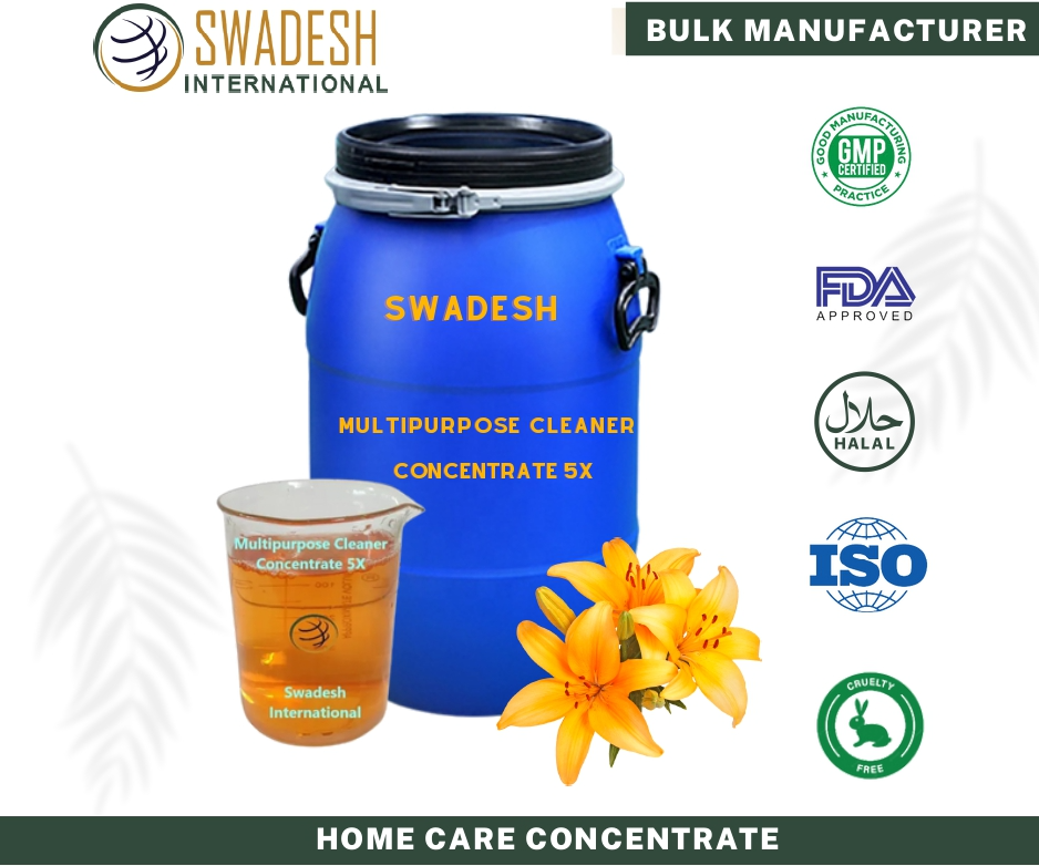 All Purpose Cleaner Concentrate 5X, manufactured by Swadesh International, is highly Effective and concentrated solution. Dilution Ratio of MCC 5X is 5kg Multipurpose Cleaner from 1Kg Concentrate after Adding Water.