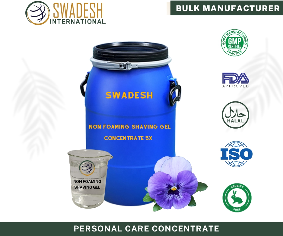 Non-Foaming Shower Gel Concentrate 5X, manufactured by SWADX AMERICAN LLC, is highly Effective and concentrated solution. Dilution Ratio of NFSGCX is 5kg Non-Foaming Shaving Gelfrom 1Kg Concentrate after Adding Water& Thickener.